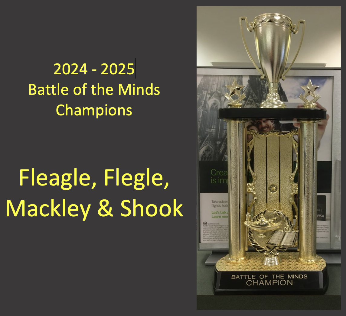 The game pits each table against the others in a Trivial Pursuit-style game with multiple choice questions. When a question appears on the screen, each table will have 10 seconds to choose their best answer and respond using an electronic remote. The leader board is updated throughout the game and the winner will leave with more than just pride. The winning team will receive an $800 cash prize.